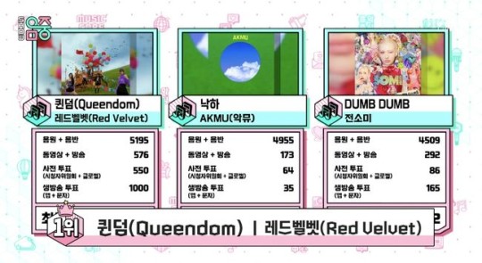 [OSEN=연휘선 기자] 레드벨벳이 출연 없이도 ‘쇼 음악중심’ 1위를 차지했다. 11일 방송된 MBC 음악 프로그램 ‘쇼 음악중심(이하 음악중심)’에서 레드벨벳이 '퀸덤(Queendom)'으로 9월 둘째 주 1위를